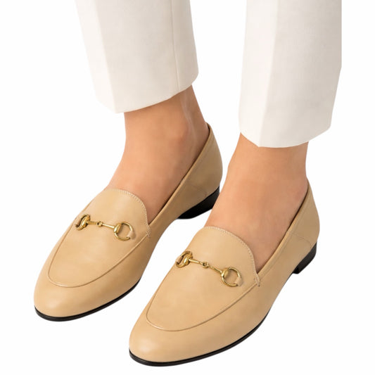 Gucci Brixton Leather Horsebit Loafer Mules Slide Beige Tan Size 37