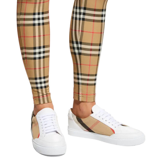 Burberry New Salmond Check Leather Sneakers Lace Up White Size 39.5