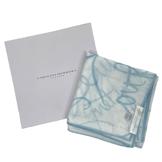 Carolina Herrera Silk Blend Printed Square Shawl Scarf White Blue 34"x 34"