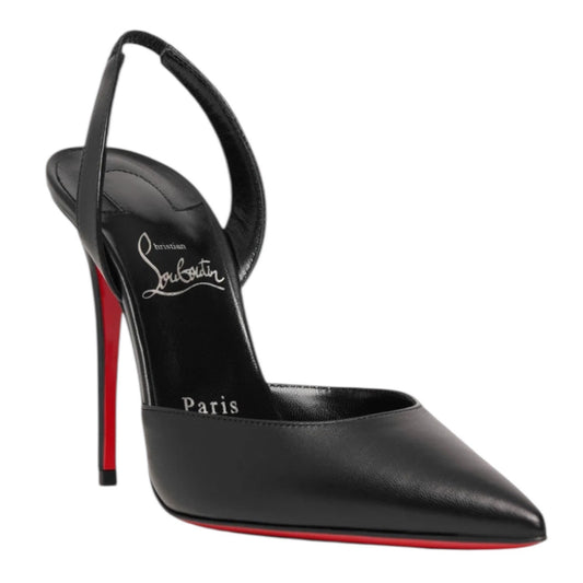 Christian Louboutin O Kate 100 Slingback Black Leather Pumps Size 37