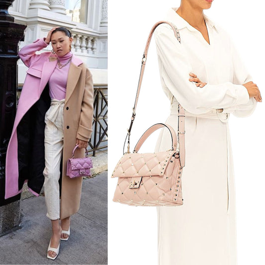 Valentino Garavani Candystud Medium Top Handle Leather Bag Rockstud Pink