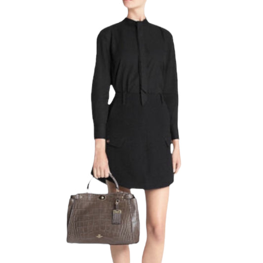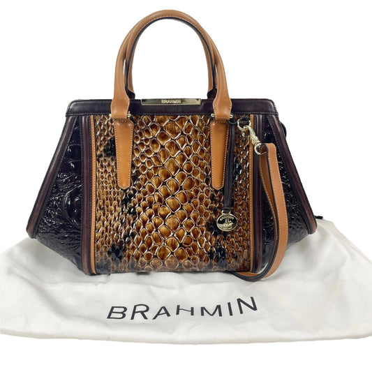 Brahmin Arden Satchel Bag Leather Croc Embossed Dark Brown