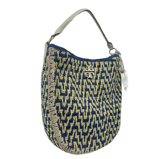 Tory Burch Thea Straw Bucket Shoulder Bag Natural White Blue