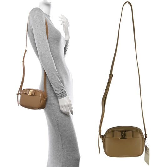 Salvatore Ferragamo Calfskin Vara Bow Crossbody Camera Bag Camel Tan