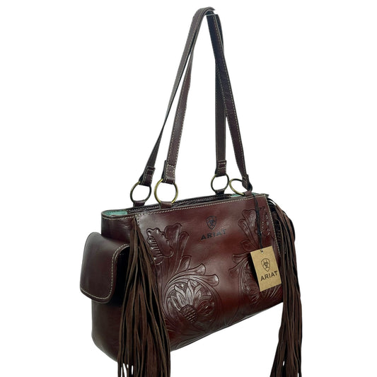 Ariat Victoria Floral Tooled Leather Fringed Shoulder Bag Brown