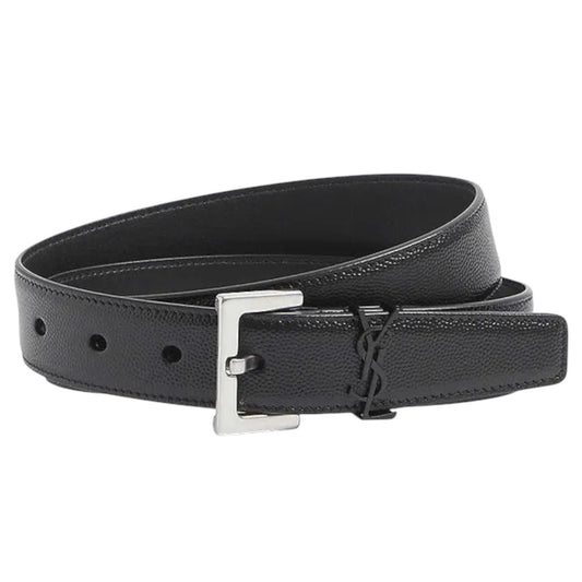 Saint Laurent Cassandre Grained Leathe Belt Square Buckle Black Size 105/42