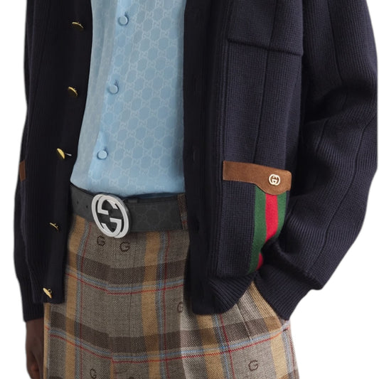 Gucci GG Interlocking Buckle Supreme Canvas Belt Black Gray Men Size 80/32