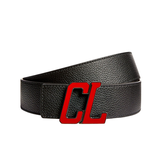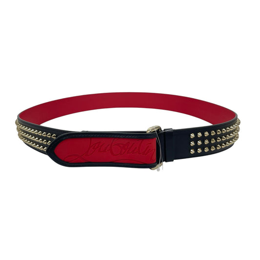 Christian Louboutin Loubi Spike Logo Leather Belt Black Red Men Size 110/44