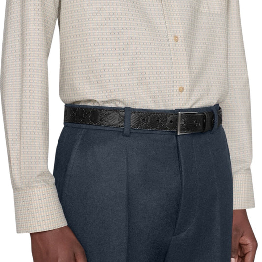 Gucci Black Perforated GG Logo Embossed Leather Belt Size 110/44