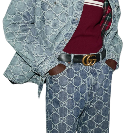 NEW Gucci Supreme Marmot GG Monogram Leather Belt Blue Beige Size 100/40