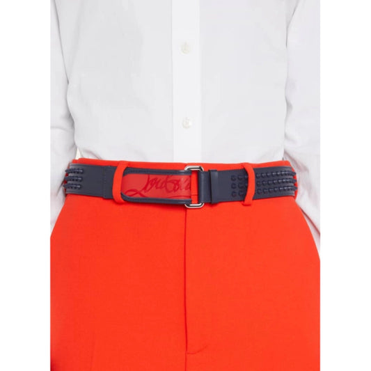 NEW Christian Louboutin Loubi Spike Logo Leather Belt Navy Size 115/46