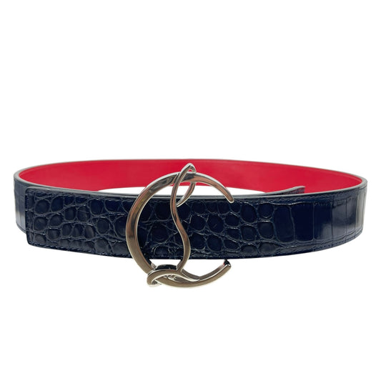 Christian Louboutin CL Logo Crocodile Reversible Leather Belt Blue Size 85/34