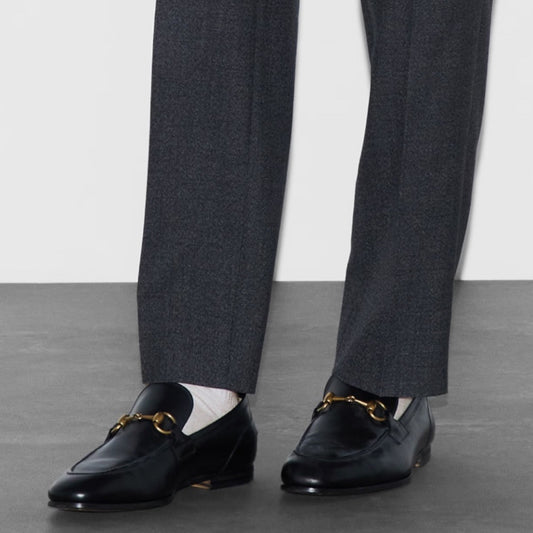 Gucci Jordaan Loafers Black Leather Gold Horsebit Men Size 8.5/ 9