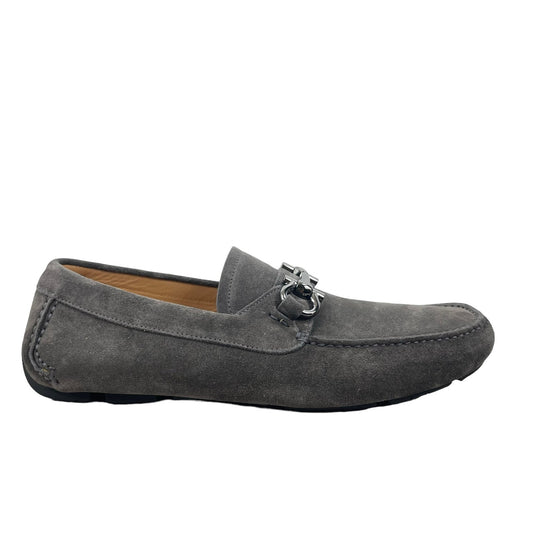 Salvatore Ferragamo Parigi Eco Suede Gancini Bit Driver Loafer Gray Size 8.5
