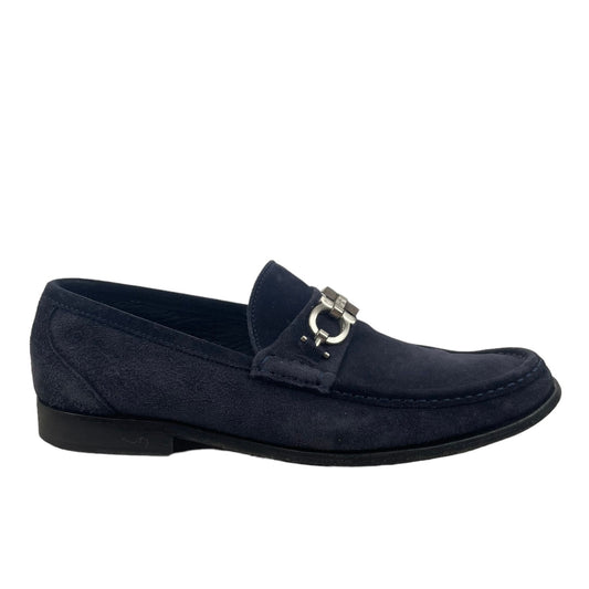 Salvatore Ferragamo Rich Gancini Suede Loafers Slip On Navy Blue Size 8EE