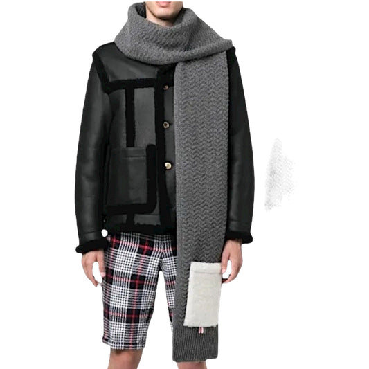 Thom Browne Shearling Trimmed Knit Wool Scarf Men Dark Grey 85"