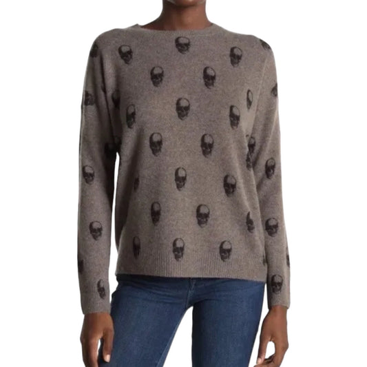 360 Cashmere Cara Jack Crew Neck Skull Sweater Dark Brown Size XS