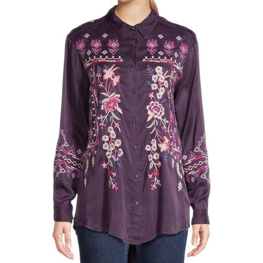 Johnny Was Curacao Floral Embroidered Oversized Tunic Shirt Size XS