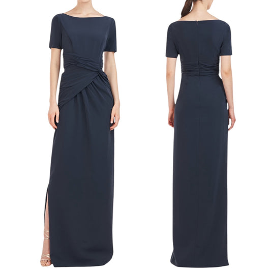Kay Unger Garbo Gathered Column Gown Short Sleeve Carbon Blue Size 8