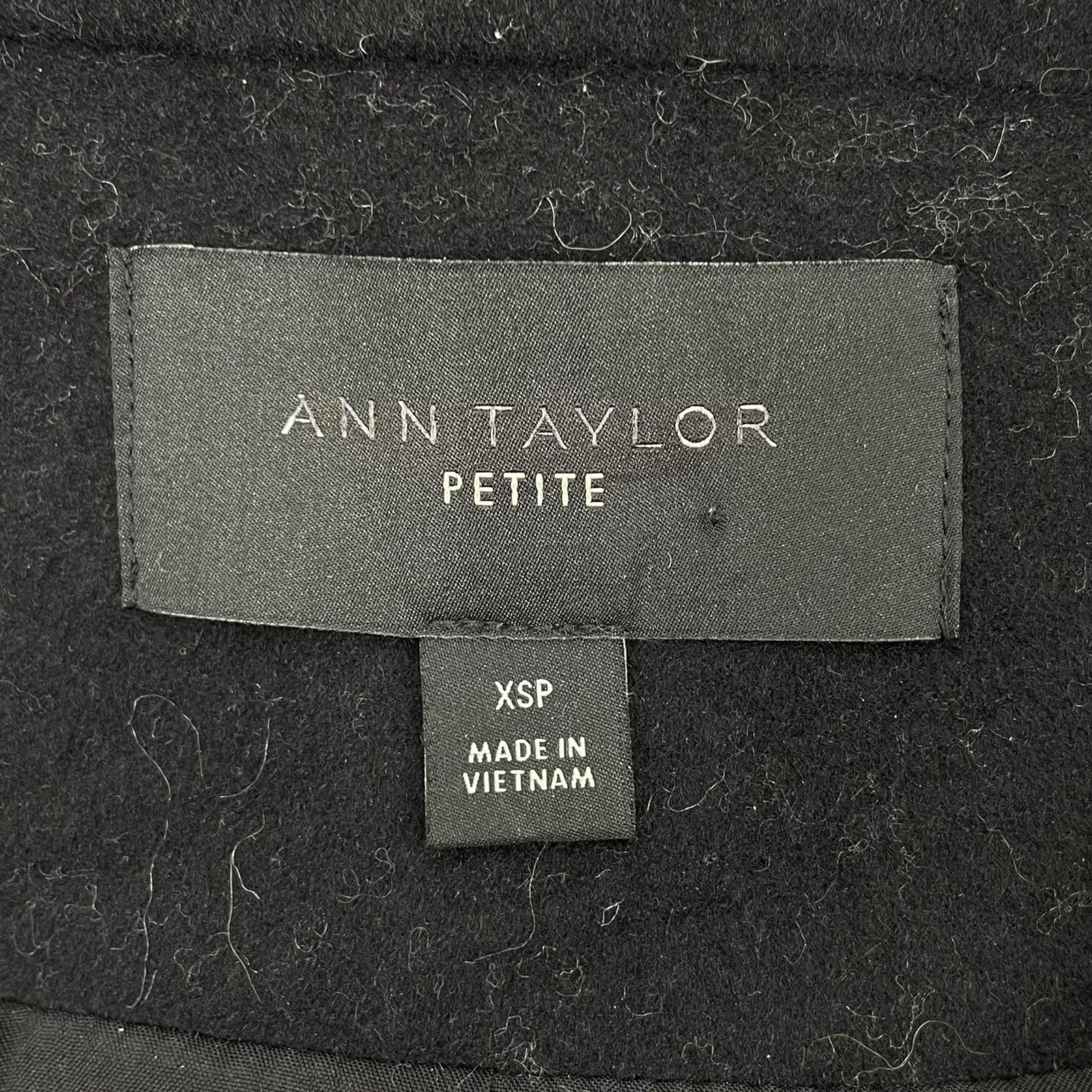 Style Tags: Ann Taylor, Wool Blend, Funnel Neck, Belted Coat, Long Coat, Black, Tailored, Classic Style, Elegant, Timeless, Structured Silhouette, Minimalist, Sophisticated, Warm Outerwear, Fall Winter Fashion, Dress Coat, Polished Look, Chic, Feminine Style, Petite Size, Size XSP, Workwear, Modern Classic, Versatile, Cold Weather Essential.