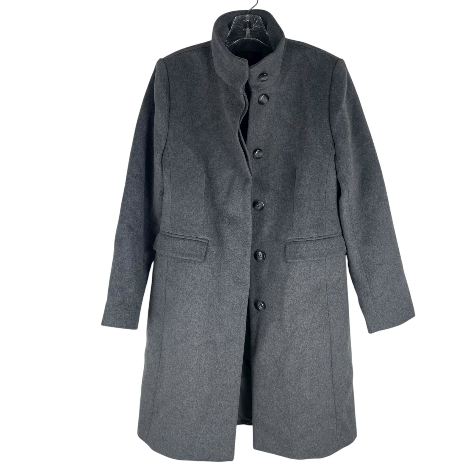 Ann Taylor Funnel Neck Wool Blend Tailored Coat Hidden Button Gray Size S