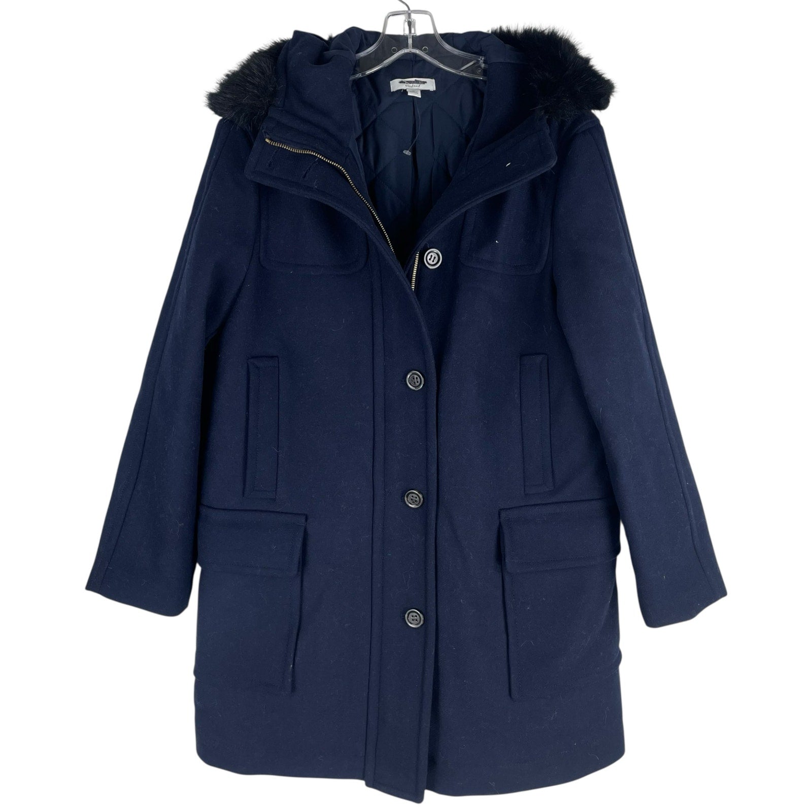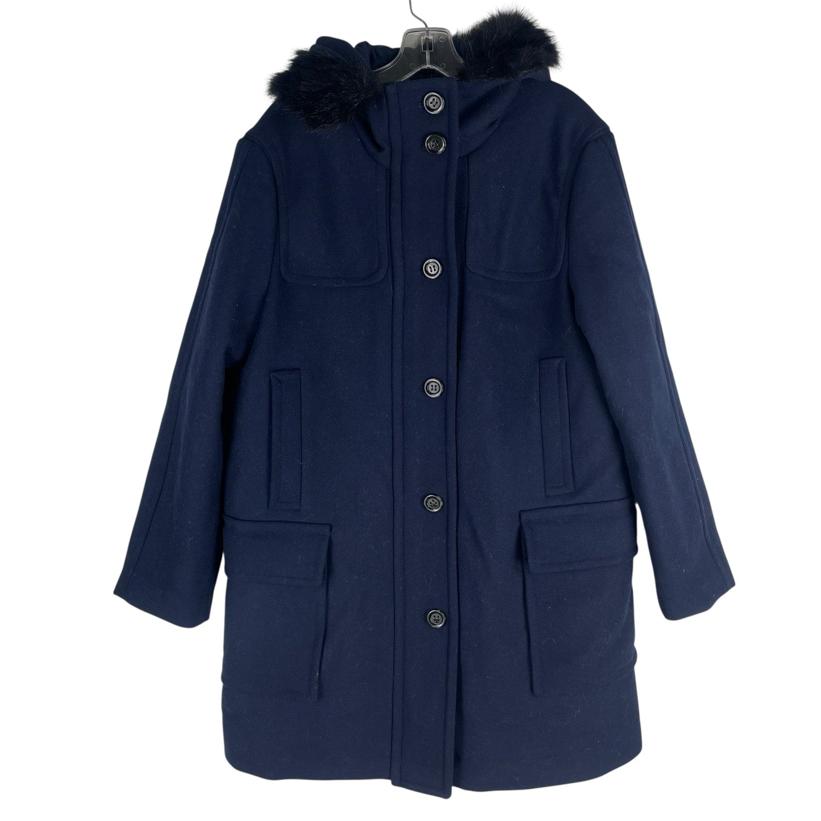 Ann Taylor Weekend Collection Faux Fur Trim Wool Duffle Coat Blue Size M