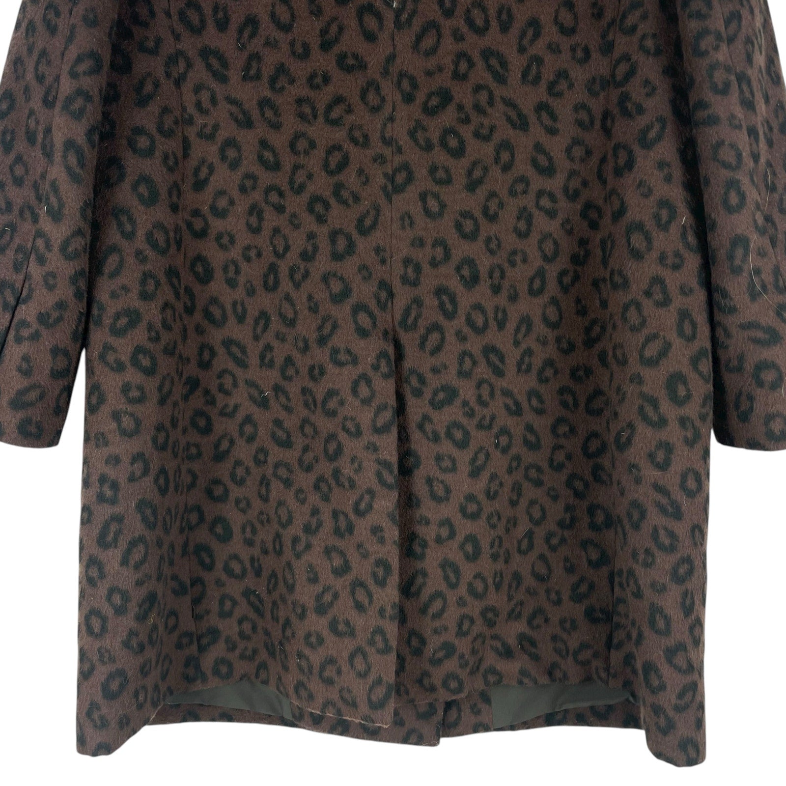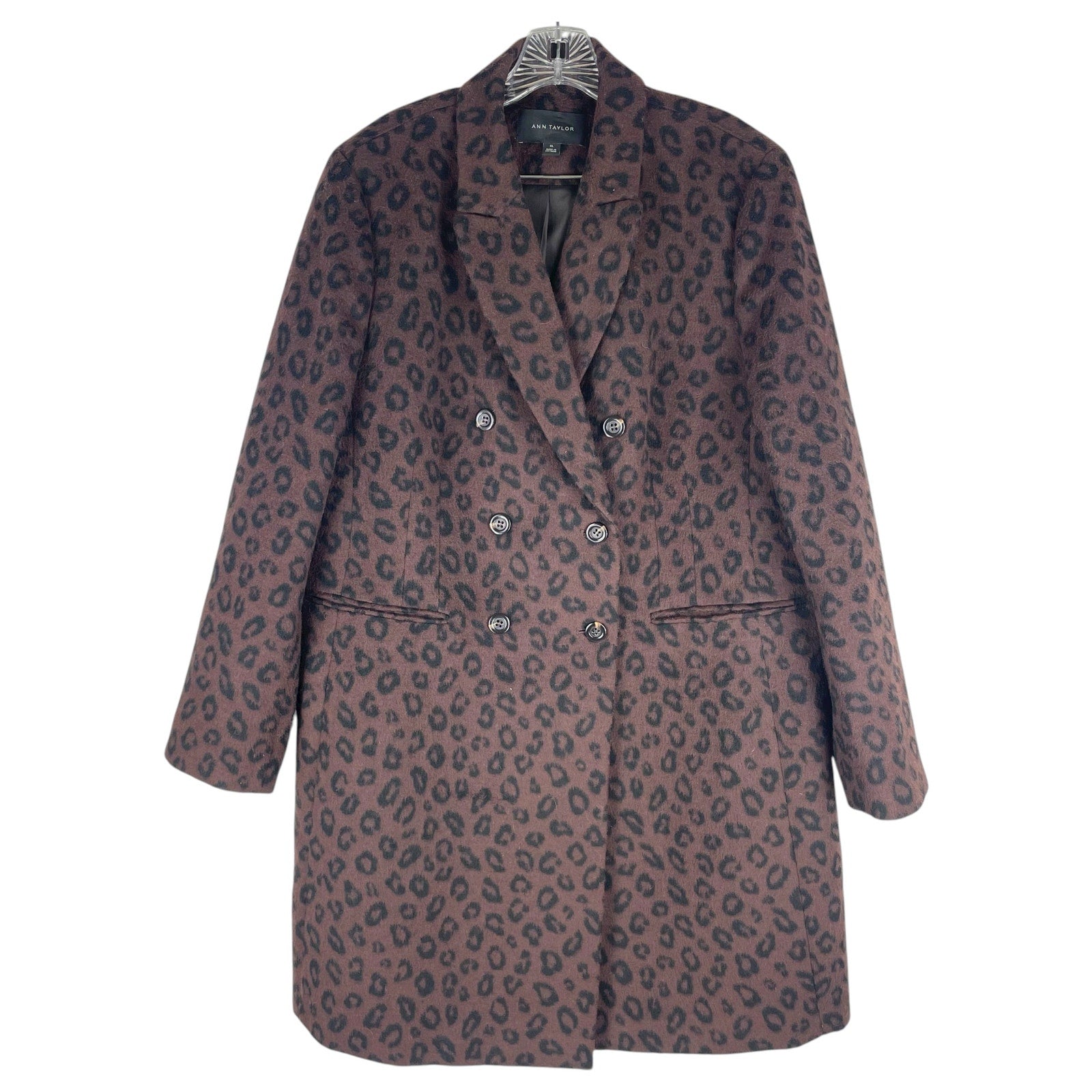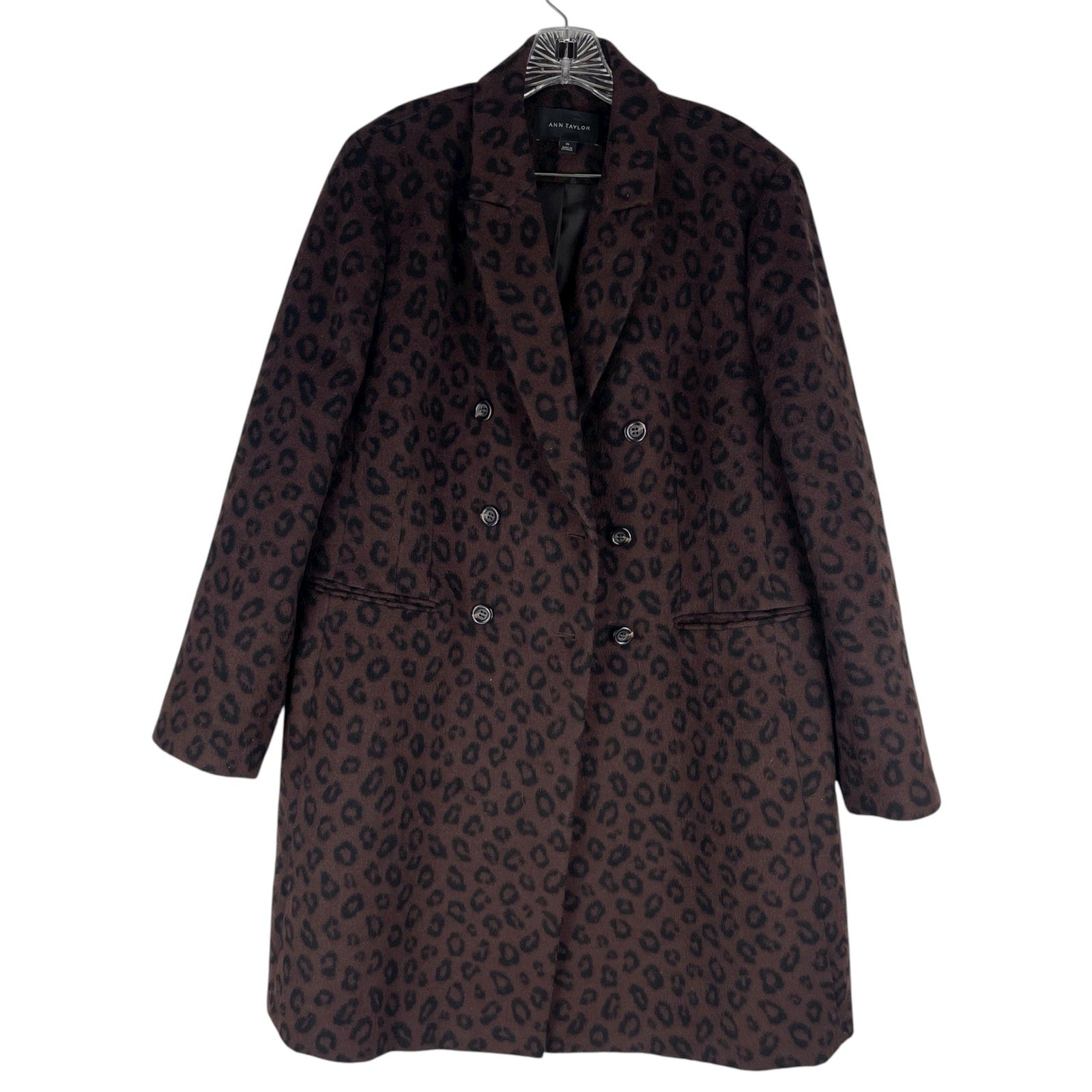 Ann Taylor Wool Blend Chesterfield Coat Brown Cheetah Print Size XL