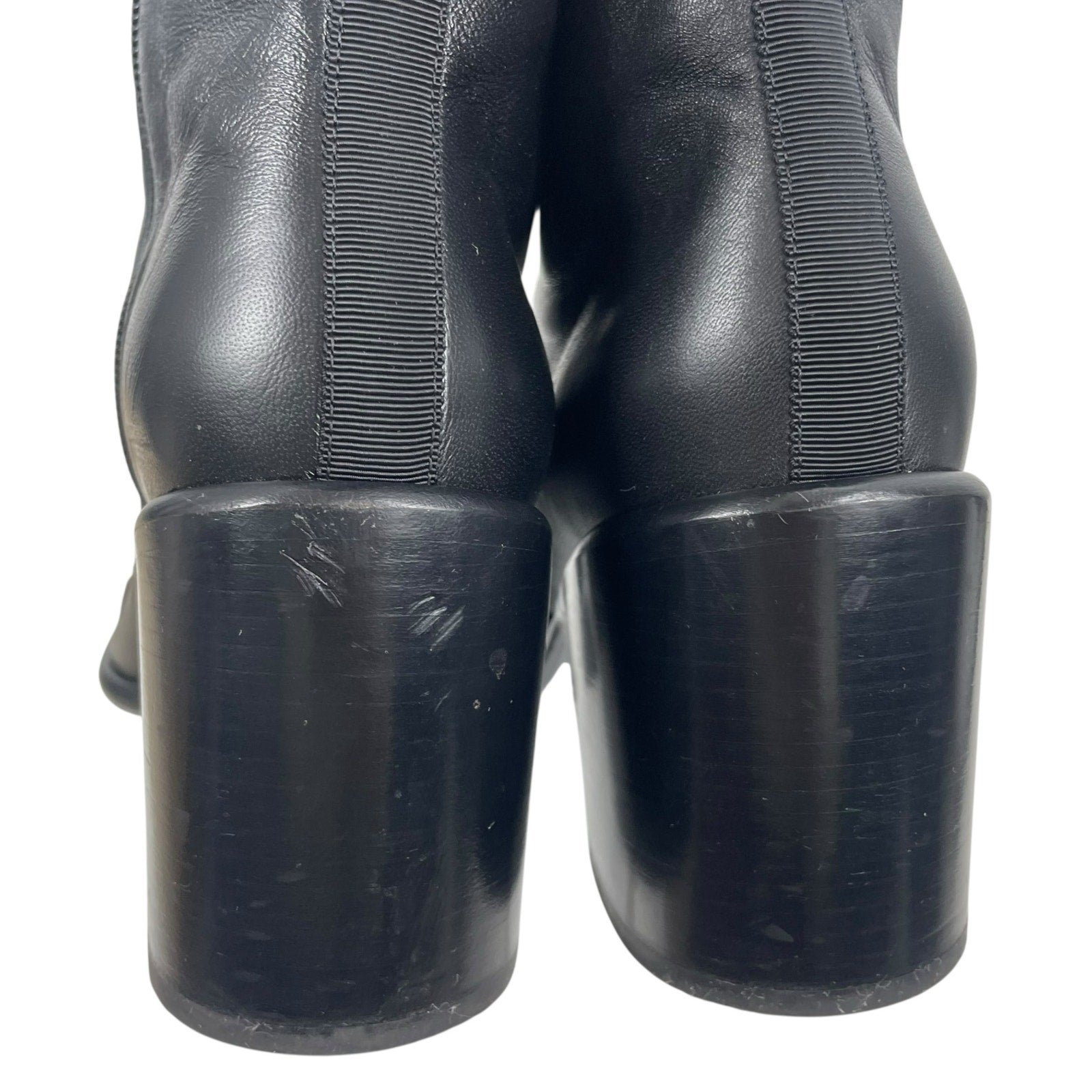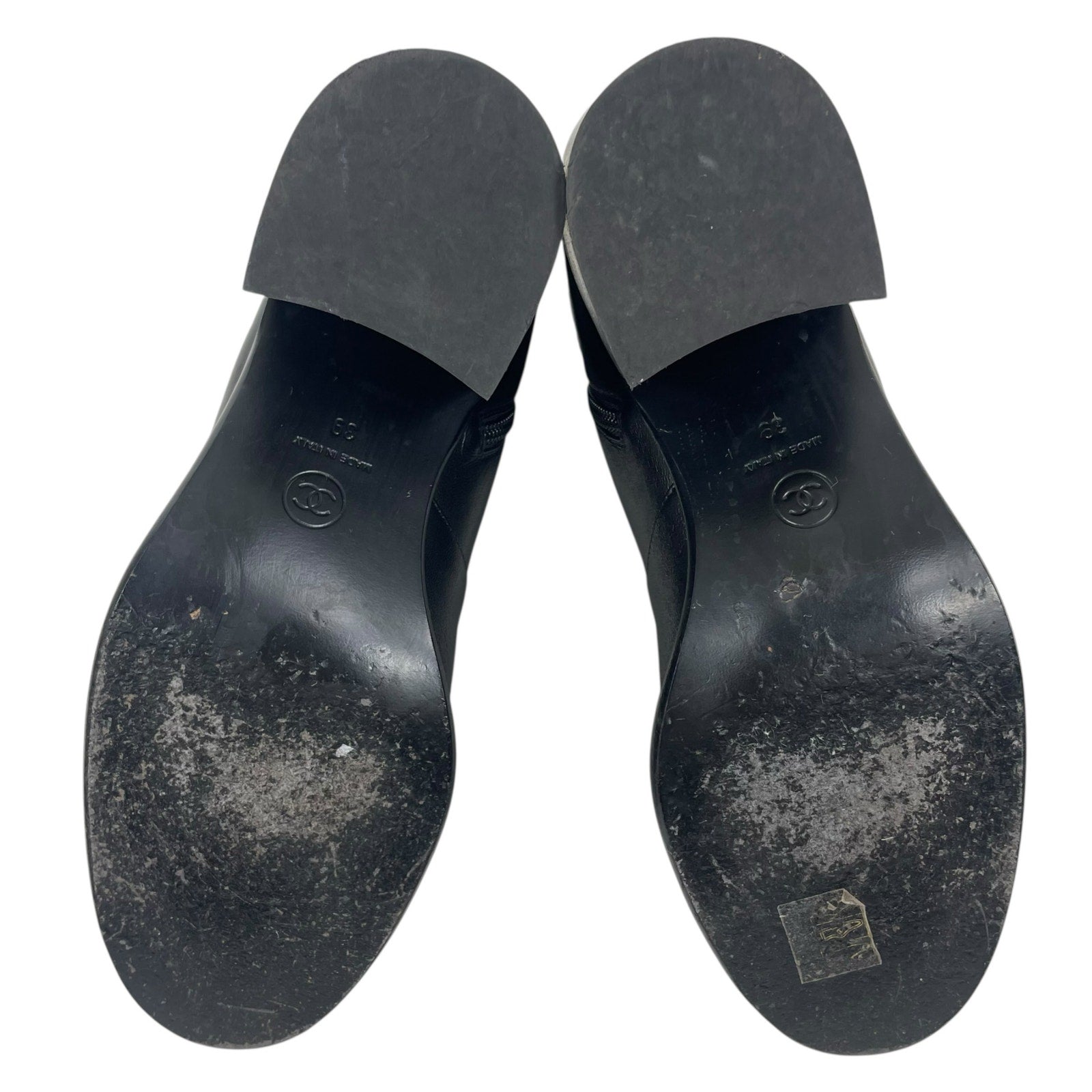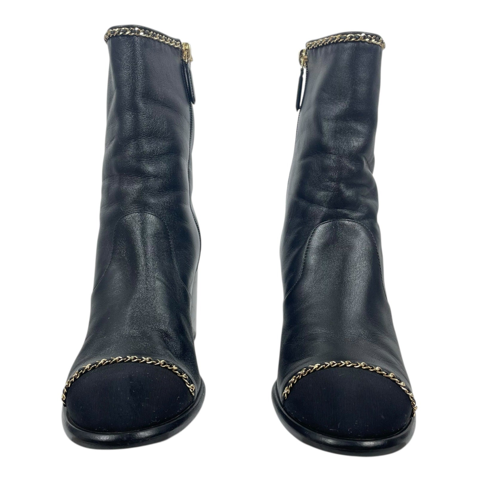 Chanel Coco Mark Logo Cap Toe Chain Short Leather Boots Black Size 39