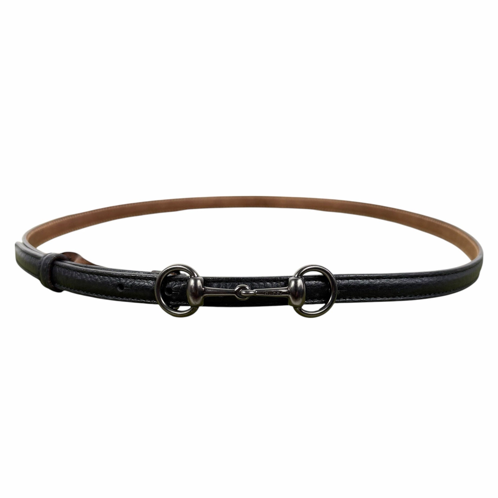 Gucci Horsebit Buckle Thin Belt Black Pebble Leather Size 95cm/38"
