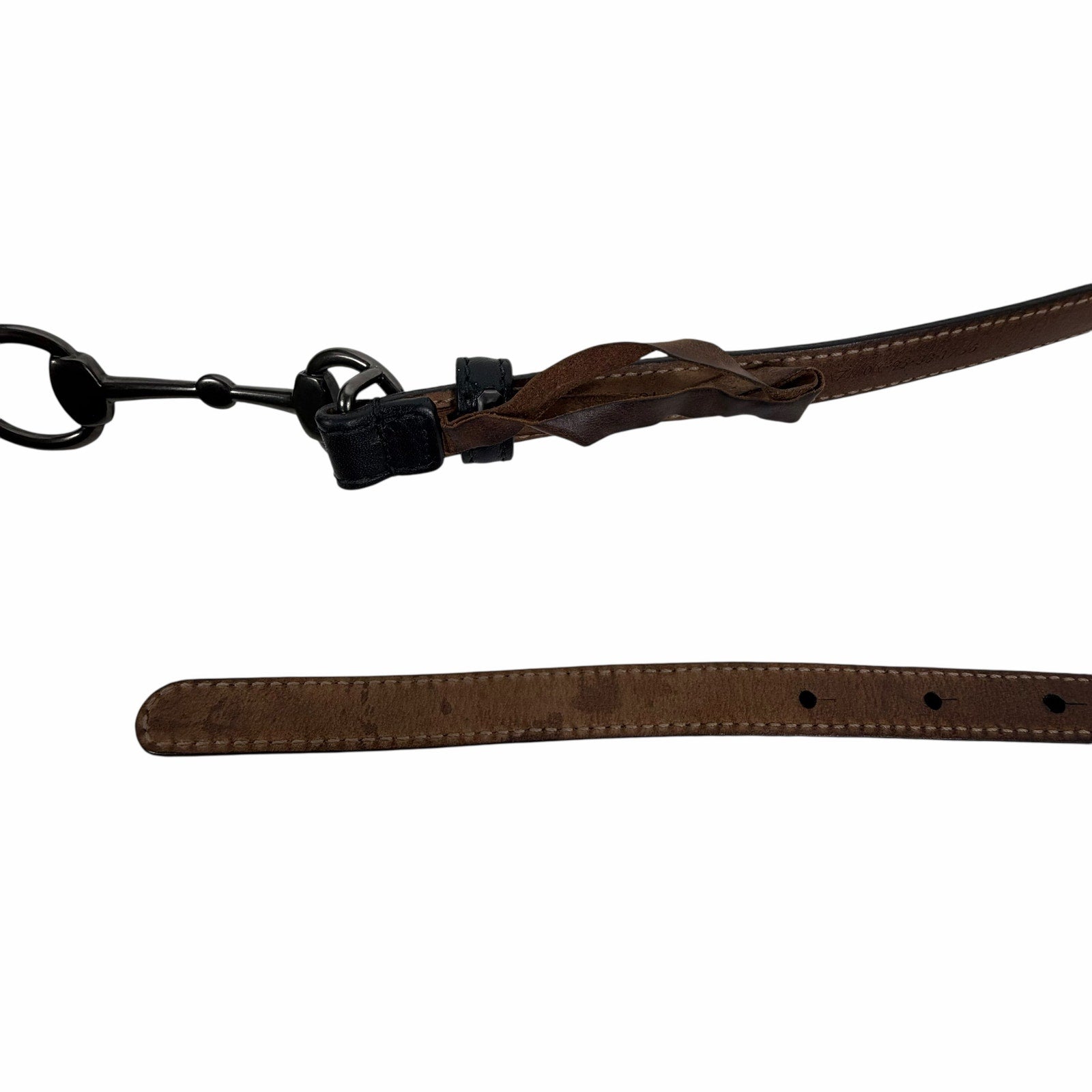 Gucci Horsebit Buckle Thin Belt Black Pebble Leather Women Size 95cm/38"