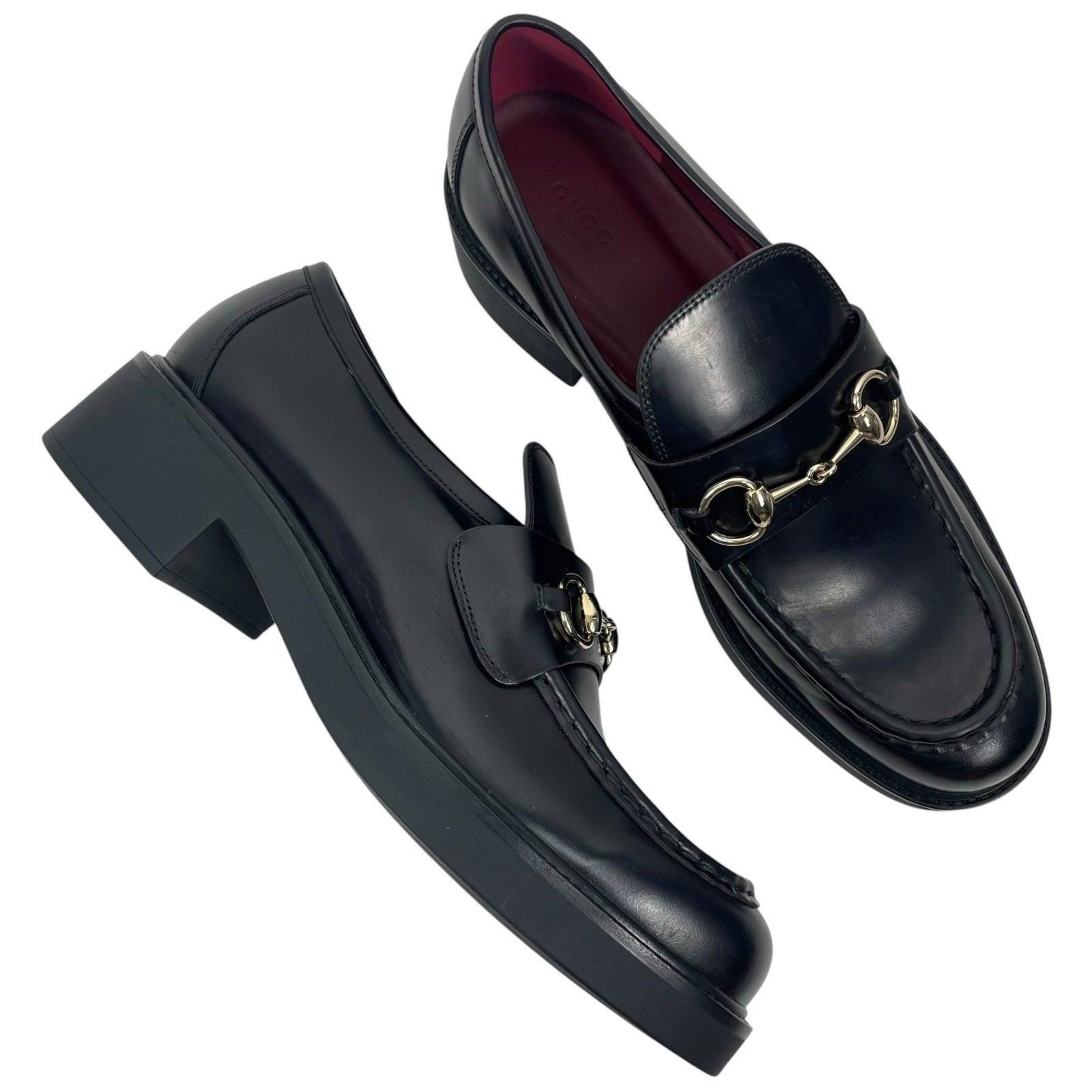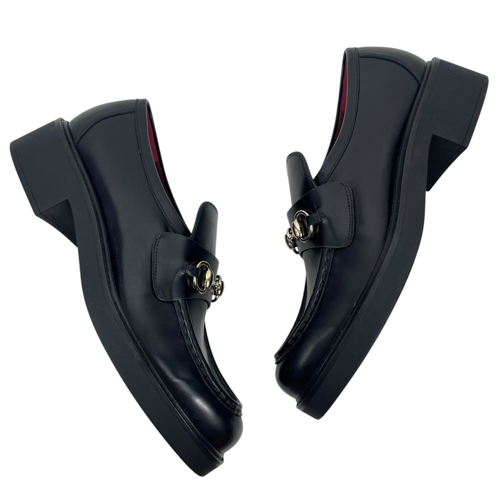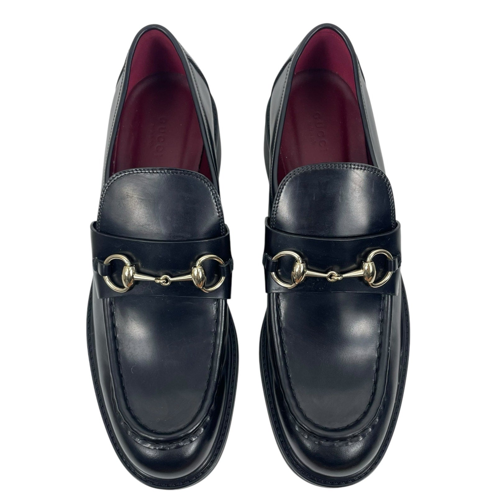 Gucci Lug Sole Leather Loafer with Horsebit Chunky Black Size 41