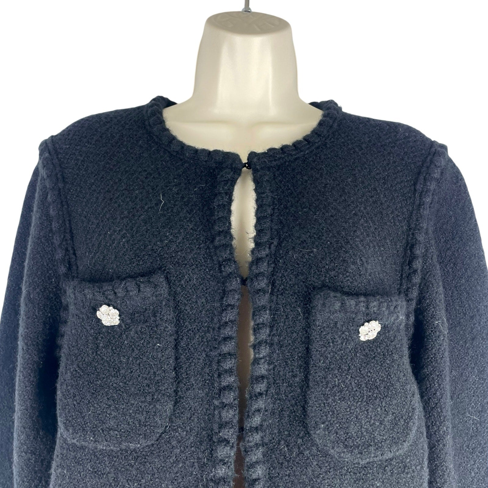 J. Crew Odette Sweater Lady Jacket with Jewel Buttons Black Size M