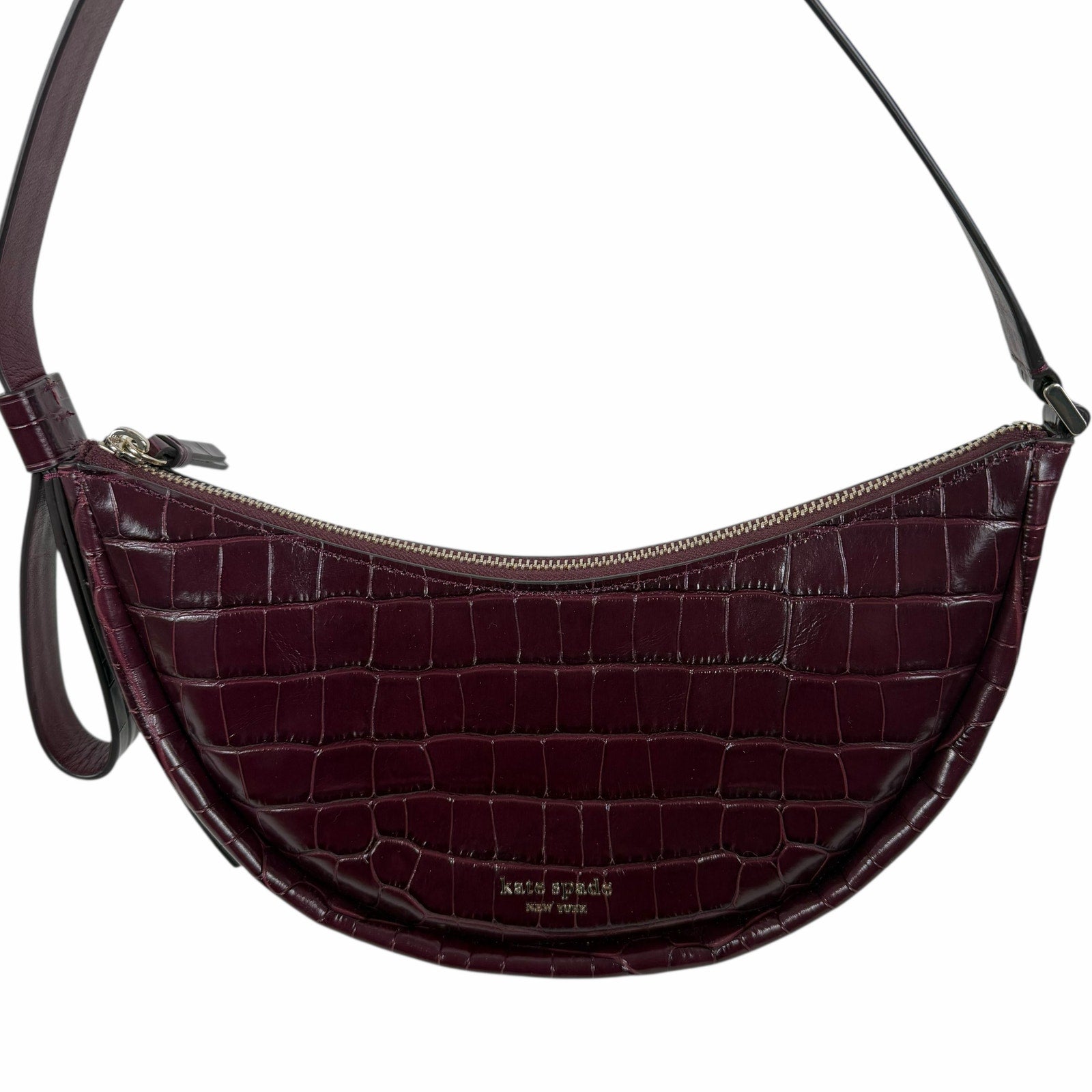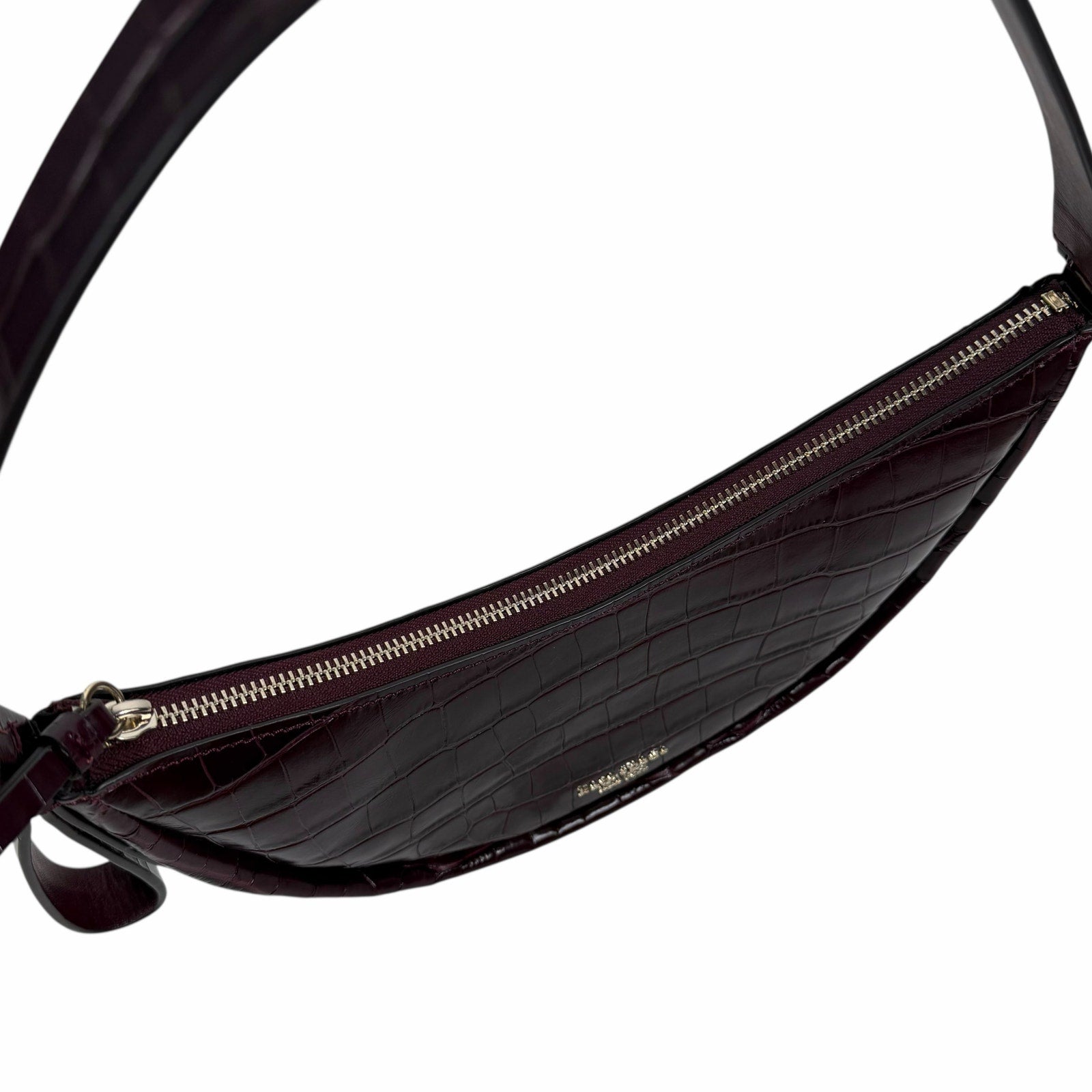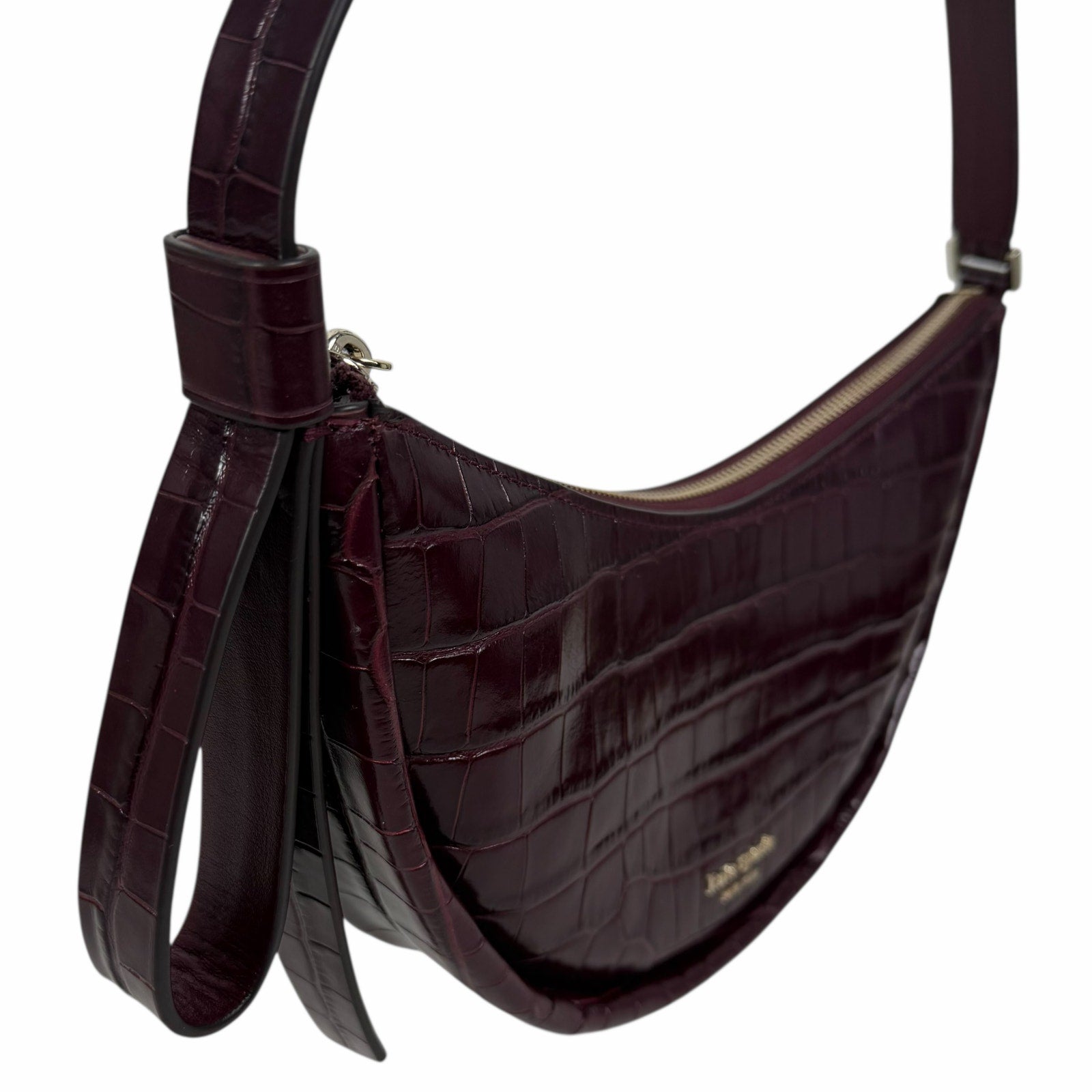 Kate Spade Smile Croc Embossed Leather Small Shoulder Bag Grenache Red