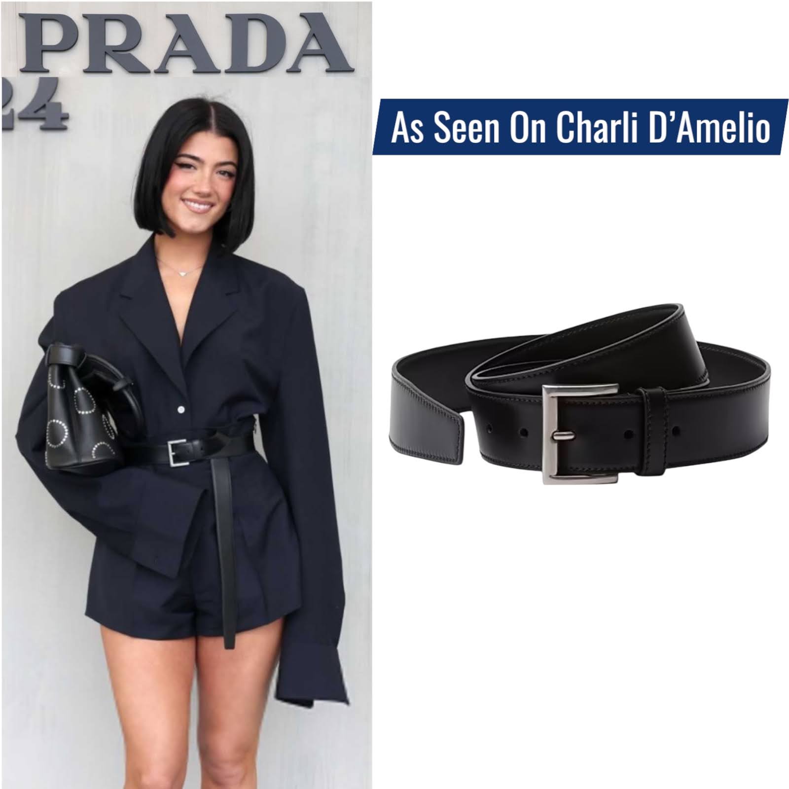 NEW Prada Black Calfskin Leather Belt Silver Buckle RUNWAY