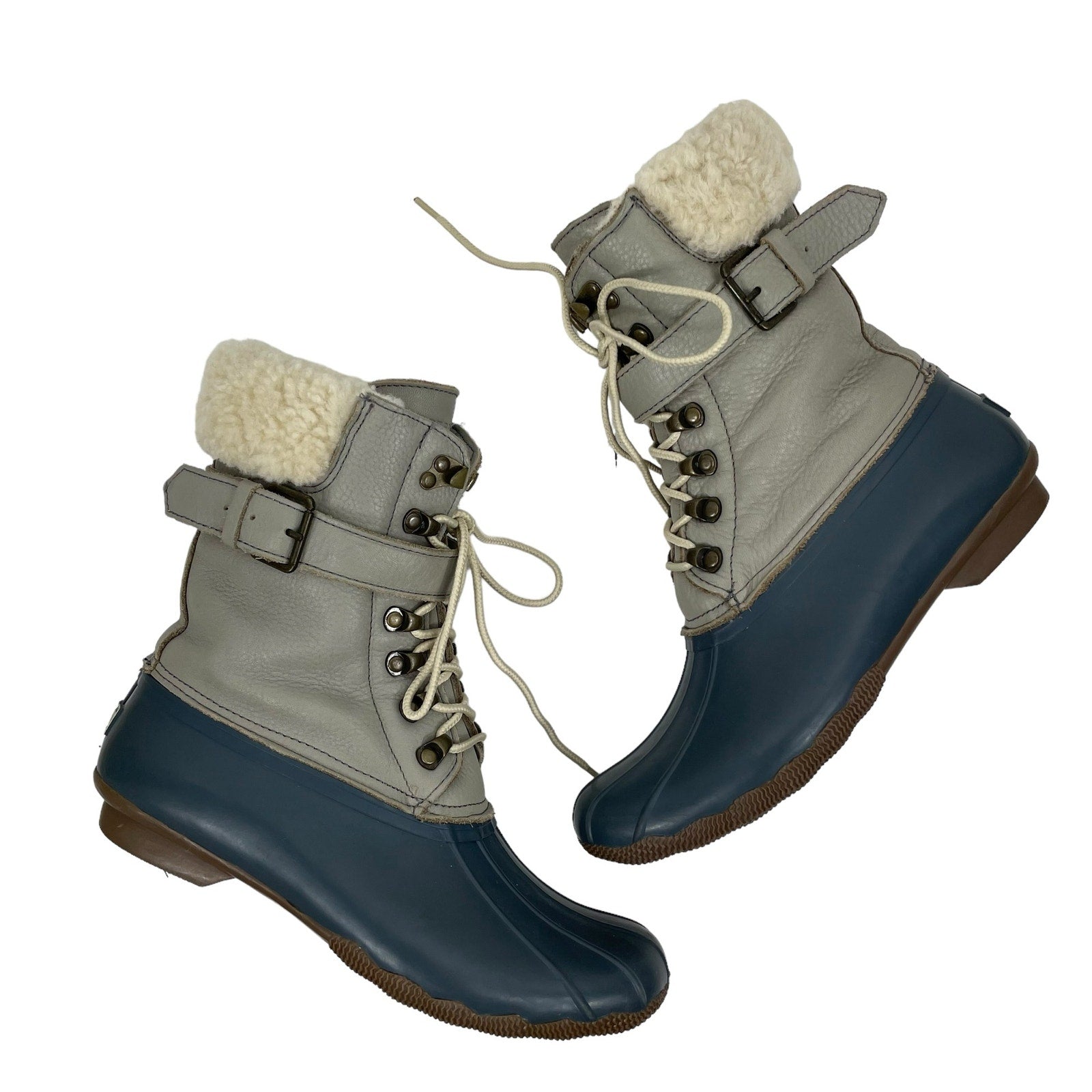 Sperry x J. Crew Shearwater Winter Duck Boots Gray Blue Size 9M