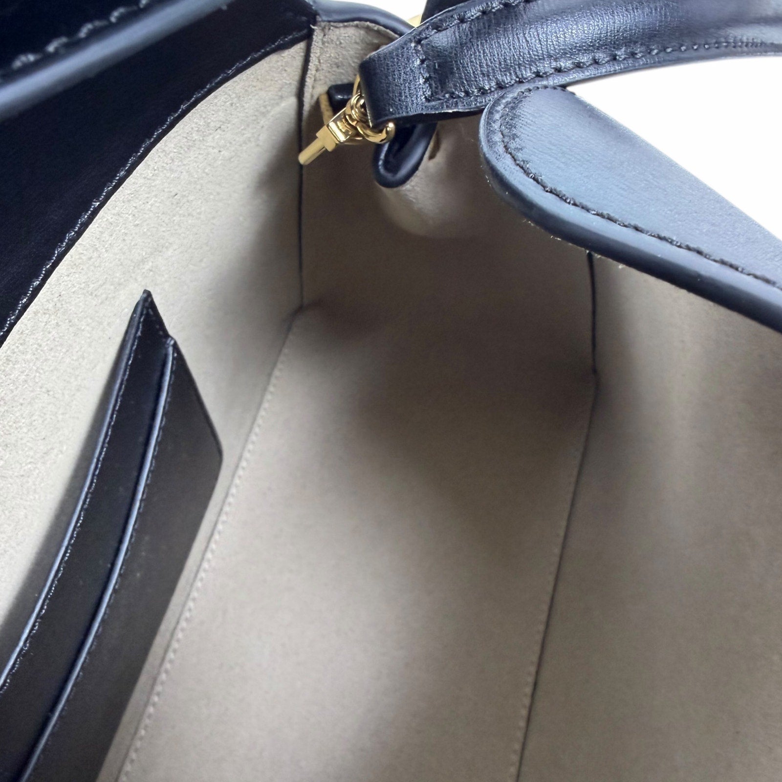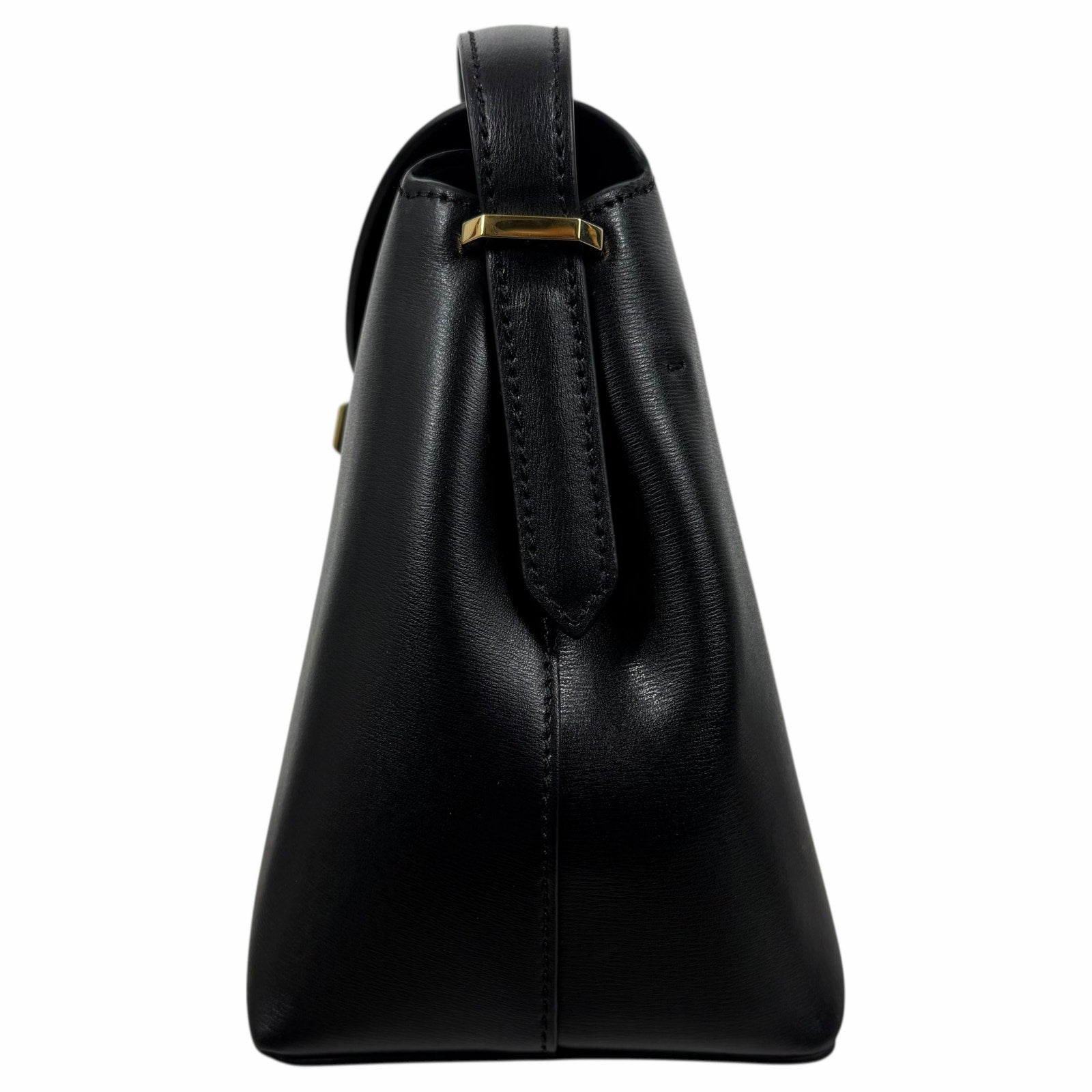 Toteme T Lock Leather Top Handle Satchel Bag Black Gold