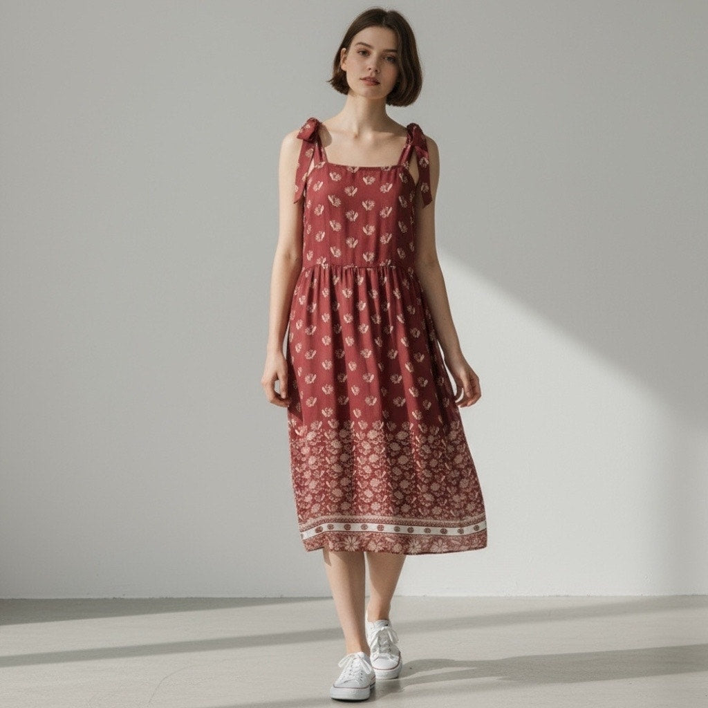 Tucker NYC Silk Shoulder Tie Camisole Sun Dress Clay Orange Size S
